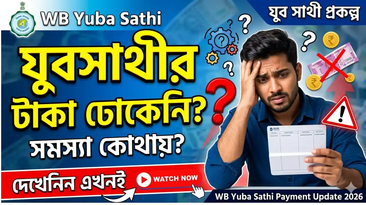 WB Yuba Sathi Payment Update 2026: পশ্চিমবঙ্গ সরকারের বেকার যুবক-যুবতীদের আর্থিকভাবে কিছুটা সহায়তা দেওয়ার উদ্দেশ্যে চালু করা হয়েছে বাংলার যুবসাথী প্রকল্প। রাজ্যের বহু আবেদনকারী ইতিমধ্যেই এই প্রকল্পের আওতায় মাসিক ভাতা পাওয়ার আশায় আবেদন করেছেন। সাম্প্রতিক সময়ে অনেকের ব্যাংক অ্যাকাউন্টে টাকা জমা পড়তে শুরু করেছে বলেও খবর পাওয়া যাচ্ছে।